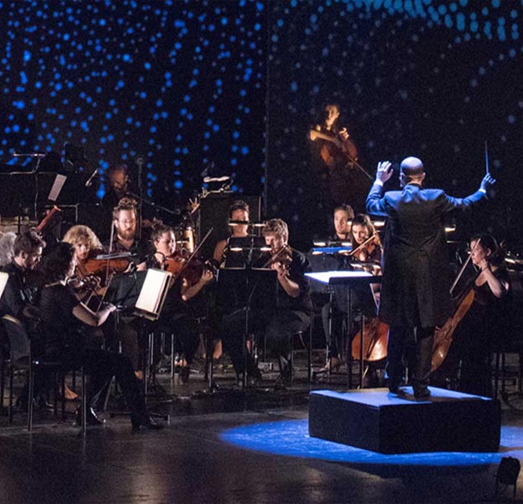 תזמורת המהפכה מציגה יצירה שמתחילה כ"קונצרט עם מספר" והופכת למסע ברכבת שדים. המספר, שמחפש את מקומו ביצירה המוסיקלית, מערער את התזמורת, דוחק את המנצח אל מחוץ לבמה ומשתלט על ההופעה. תוך כדי כך נחשף המתח שבין יצירה וסיפור, בין מוסיקה ודרמה ובין יופי לבין אגו.
